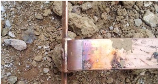 銅導線與銅帶搭接長度應至少20毫米;幾塊接地體(銅板)之間的連接也應搭接銅焊,銅板的搭接長度至少為50毫米,并進行兩面焊接。焊縫應平整、飽滿,無明顯氣孔及缺陷,焊接處的焊渣必須清除。