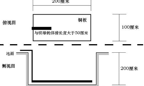 作為地下銅板至地面的接地引線。寬度不小于25毫米,厚度不小于3毫米,長度若干(視具體情況而定)