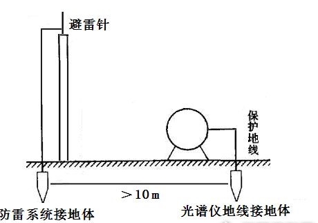 1.3 直讀光譜儀接地線不能靠近建筑物防雷系統的接地體,所設的接地體距離不應小于20米。